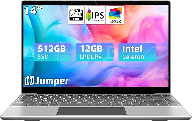 jumper Laptop, 12GB DDR4 RAM 512GB SSD, 14 Inch 1080p FHD IPS Screen, Quad-Core Celeron Processor, UHD Graphics 600, Portable Computer wit...