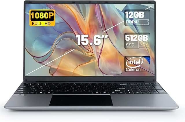 SGIN Laptop 15.6 inch IPS FHD Display, 12GB DDR4 512GB SSD Laptops Computer, Intel Celeron N5095 Quad Core Processor, 1920 * 1080, Dual Ba...