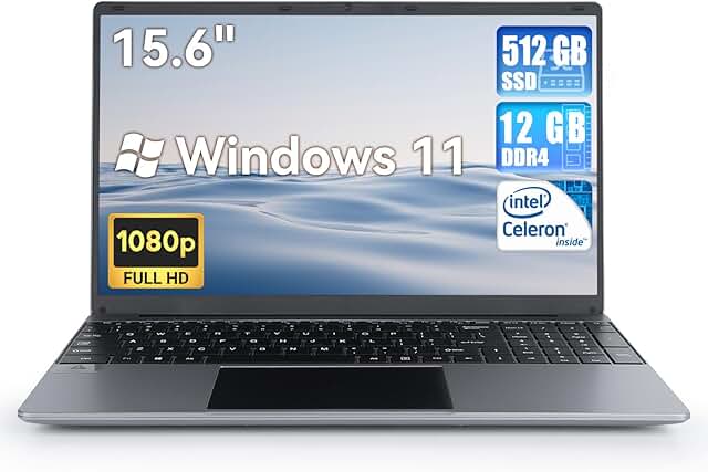 jumper Laptop 12GB DDR4 256GB SSD, Intel Celeron Quad Core CPU, Lightweight Computer with 14 Inch Full HD Display, Windows 11 Laptops, Dua...